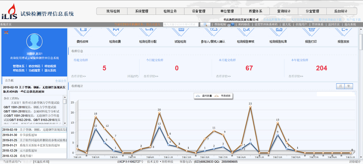 (委托收樣,樣品管理、合同管理、收費(fèi)管理、檢測(cè)/審核/批準(zhǔn)管理,報(bào)告打印管理)