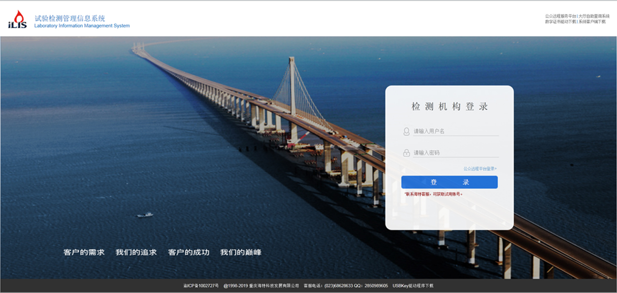 系統(tǒng)所有功能均基于Internet互聯(lián)網(wǎng)運(yùn)行,軟件使用不受時(shí)間和地域的限制,現(xiàn)場(chǎng)檢測(cè)可即時(shí)錄入檢測(cè)數(shù)據(jù),出差也可簽發(fā)檢測(cè)報(bào)告,只需要輸入一個(gè)網(wǎng)址即可。得益于先天的架構(gòu)優(yōu)勢(shì),本系統(tǒng)具有良好的擴(kuò)展性,如工地試驗(yàn)室管理、駐外分室管理、現(xiàn)場(chǎng)試驗(yàn)檢測(cè)等均可實(shí)現(xiàn)在線分布式信息化無(wú)縫管理。