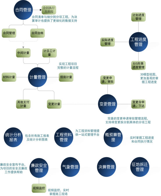 海特高等級公路多項目建設項目管理大數據云平臺是海特科技在交通工程建設信息化領域建設多年的開發成果,它沉淀了海特作為交通工程建設信息化供應商多年來所積累的豐富經驗,該平臺主要為項目業主及各層參與單位投資、建設、運營、養護多個工程項目的復雜管理過程而定制,旨在建立一個現代化、務實、高效的信息化管理平臺,確保高質量、低成本的完成項目業主及各層參與單位的管理工作。該平臺包括項投資管理、質量管理、安全管理、文檔管理、進度管理、辦公自動化六大功能模塊,并提供了基于BIM的綜合分析決策支持應用模塊,能完成項目業主及各層參與單位對一個或多個公路工程項目項目建設全過程的管理,尤其對項目整個過程費用、質量、進度等數據統計和分析。從而達到項目業主及各層參與單位對各項目投資、建設、運營的有效管理和控制的目標。